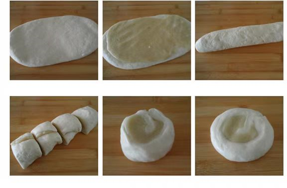 ①将一部分材料加工成膨松面团发酵备用。