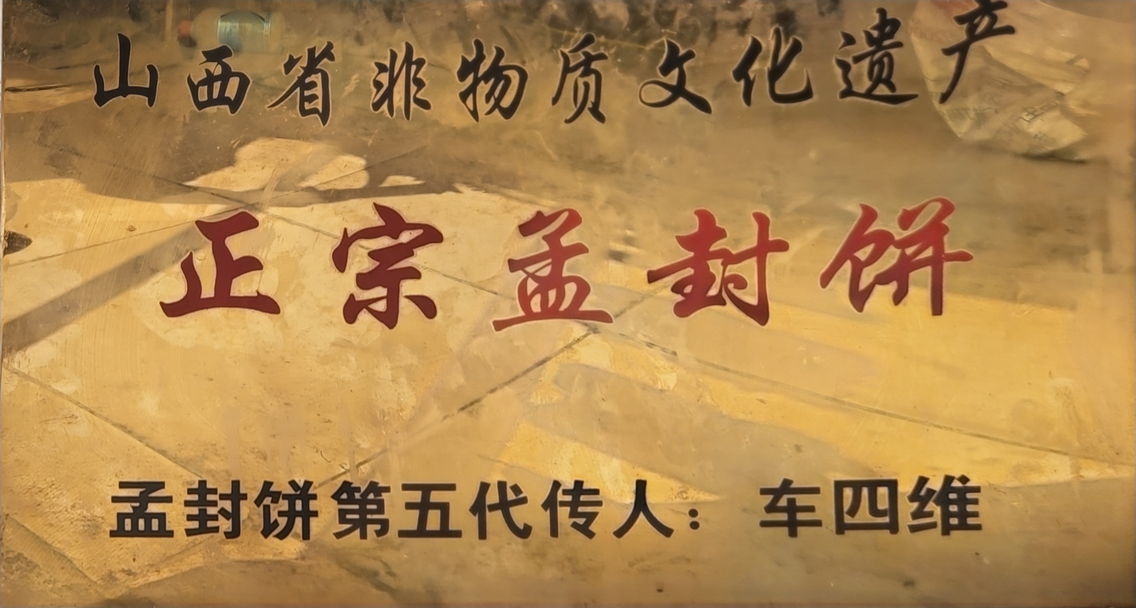 第五代传人车四维,继承和发扬“饼圣”赵晋山的特艺绝技,开拓性地将传统工艺与现代高科技相结合,使孟封饼色、香、味、形达到炉火纯青的境界,在山西首届名优特产交流大会上荣获“烧饼大师”的称号。