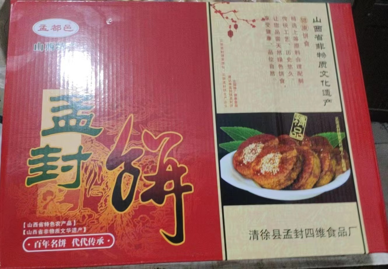 孟封饼,一张饱含当代晋商大格局与使命感的清徐名片,一个极具历史底蕴的清徐地标式特产。从2009年4月到2012年6月,其传统制作工艺,经历了从县级非遗到市级、省级非遗的“三级跳”,孟封牌商标也荣获“山西省著名商标”荣誉称号。昌发祥食品有限公司也先后荣获“社会公认信誉单位”、“山西诚信单位”、“山西守合同信用企业”、“山西省兴村富民创新企业”、“山西省农业产业化省级重点龙头企业”等荣誉称号。