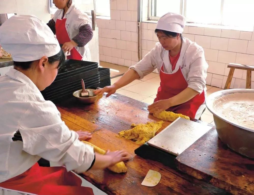 1.传统孟封饼手工和面、调酥、制饼。